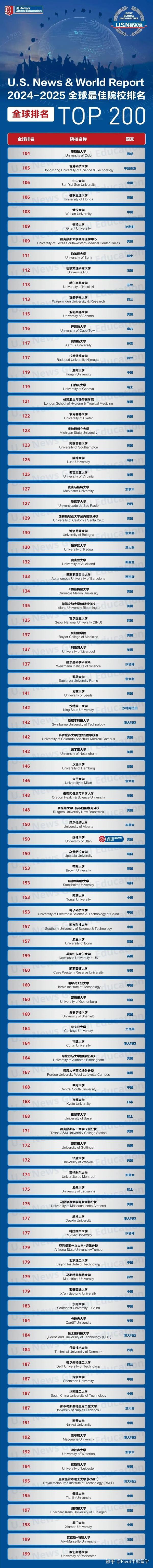 全球最佳院校排名104-199位次榜单