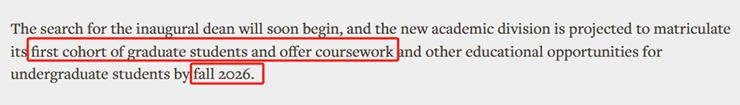 学院预计在2026Fall首次招生,将为200-250名研究生提供学习服务。