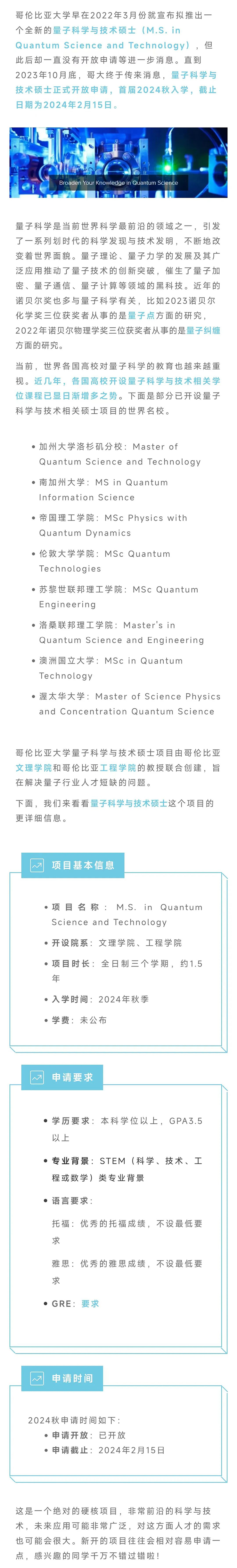 【Pivot资讯】哥伦比亚大学【量子科学与技术】硕士开放申请!!